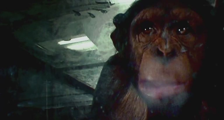 Con esta película nos alejamos del clásico resucitado para empezar en un laboratorio donde al parecer se está experimentando con monos de una manera bastante peculiar, uno de ellos está conectado a varias pantallas donde parecen estar haciéndole ver una y otra vez la maldad humana.
