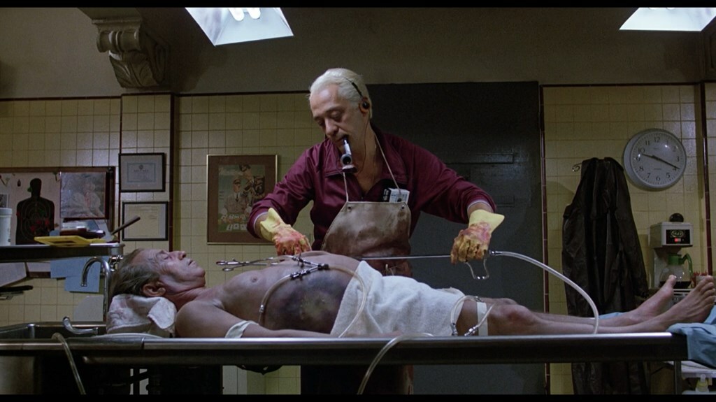 El enterrador está introduciendo una especie de aparato tecnológico en la cabeza del sheriff (al que ha matado también) mientras la motera zombi de la bolsa de cadáveres persigue a un hombre al grito de «carne fresca». Cuando lo atrapa, en vez de devorarlo le hace una felación, algo con una gran lógica… Después, la motera esposa se las ingenia para encerrar al enterrador con esa zombi que parece querer tirárselo hasta la muerte dentro de la cámara frigorífica de la morgue.
