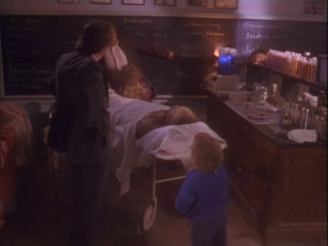 Antes de irse del pueblo la chica entra en la casa del enterrador donde una de sus amigas se encuentra en una bolsa para cadáveres. El enterrador irrumpe, dispara al marido y el enano impide la huida de la mujer.
