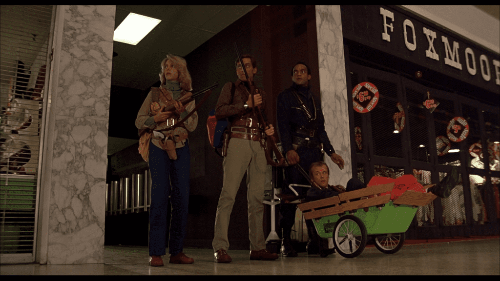 El centro comercial crea una visión que supera con creces la de una casa apuntalada y dejada de la mano de dios. La visión de esos zombis en color con esos tonos grisáceos de piel, creo que le confiere un aura especial a esta película.