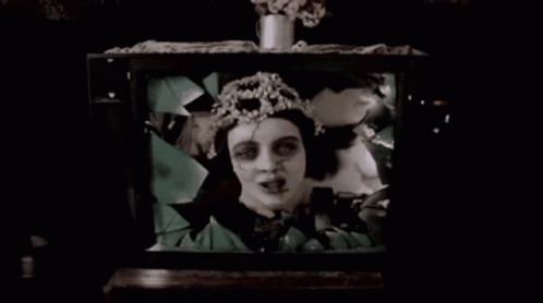 En esa escena, podemos ver cómo la fotografía del difunto marido que tiene la lápida, ha cambiado de expresión y ahora está bastante descontenta.