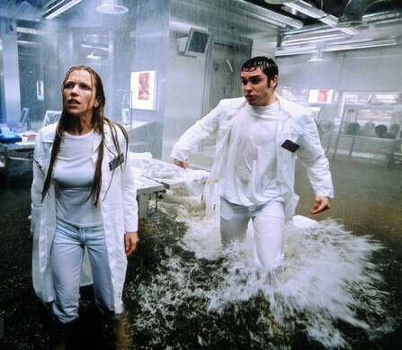 En los laboratorios, cuando descubren la inundación, la actriz que se encuentra al otro lado de la mampara, Anna Bolt, tuvo que aprender submarinismo solo para el rodaje de esa escena.